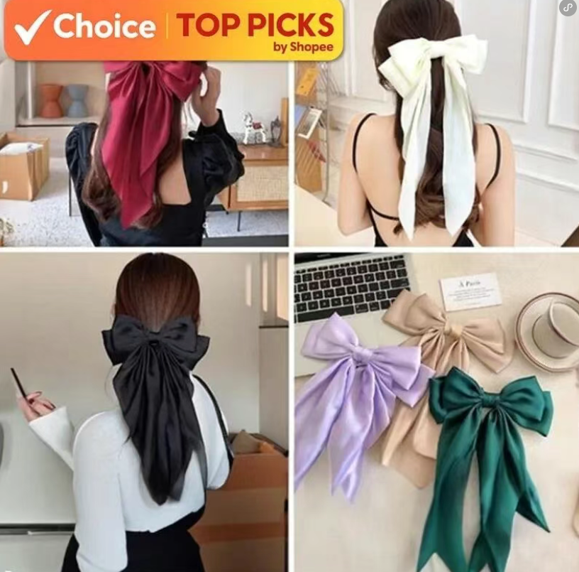 Colourful Big Long Ribbon Hairclip | Chiffon Bow Knot | Klip Rambut Riben |  Girls Hair Accessories